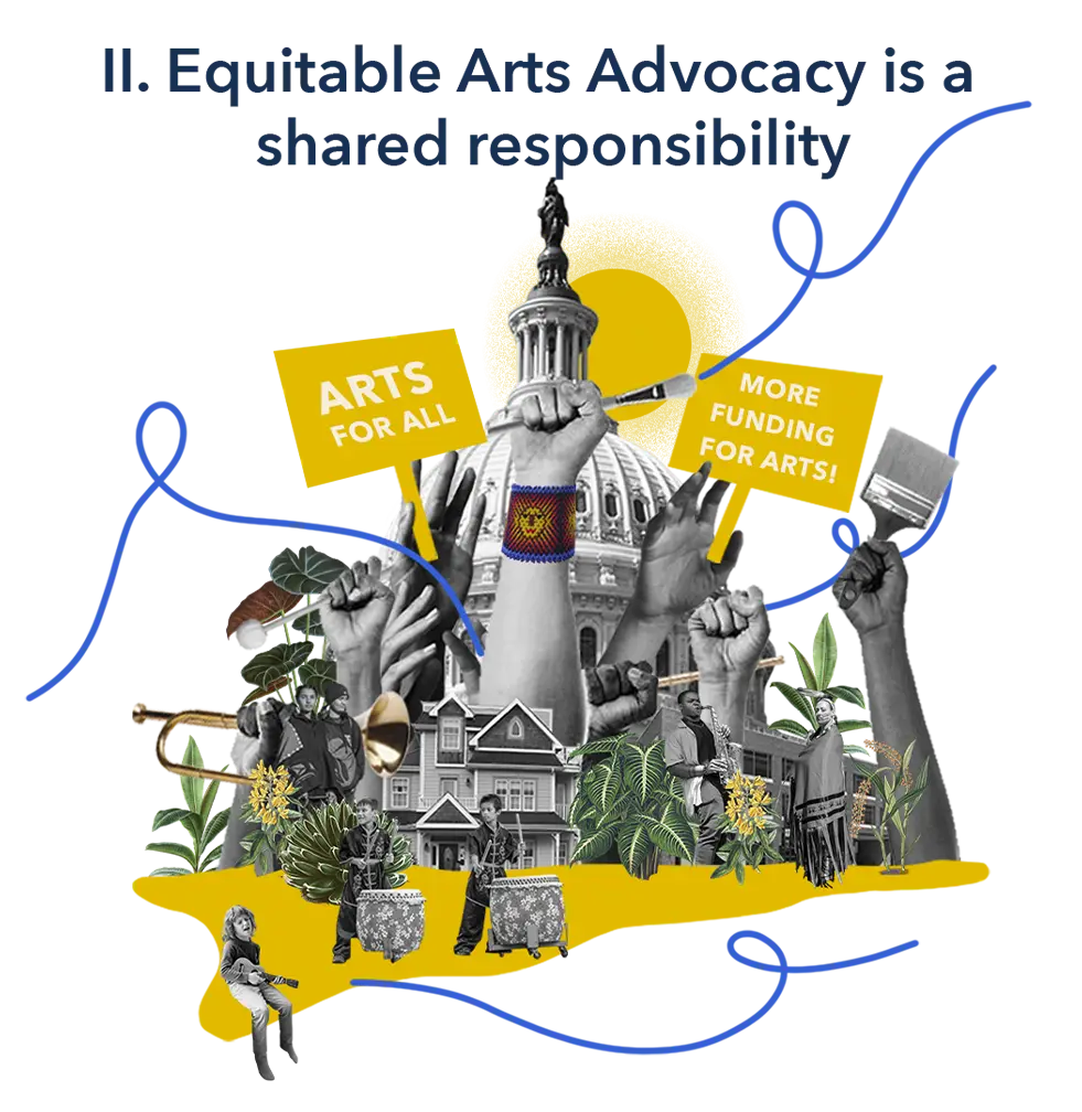 By engaging policymakers, educators, philanthropists, or community leaders, we appeal to their unique capacities to leverage support, while ensuring that historically marginalized communities are represented and supported. Their vital perspectives guide our advocacy to gain equitable access to the arts.